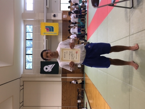 団体戦で3勝をあげた加藤公央さんが優秀選手に選ばれました。