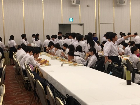 修学旅行2日目です。起床時間も全員が守ることが出来て、現在朝食をとっている最中です。今日もたくさん歩くことになりますので、しっかりエネルギー補給をしておきましょう。