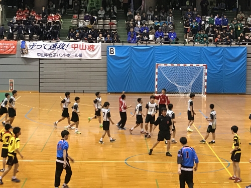 富山県氷見市で本日、開会しました春の全国中学校ハンドボール選手権大会に出場している男子ハンドボール部は、1回戦、山形県代表 東根第一中学校と対戦し、23対15で勝利しました。