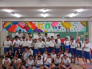 1位は1組。よく頑張りました。2位は6組。3位は4組でした。