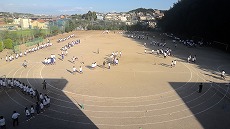 縦割り練習とは、1,2,3年の同じクラスが一つのチームになって一緒に練習を行います。練習計画は3年生が主導して計画しました。普段にはない、異学年の交流。円陣の練習や大繩、玉入れ、選抜リレーなどの練習。活気があって、みんな一生懸命でそれぞれ一つのことに向かって取り組む姿を見て、体育祭が楽しみになりました。