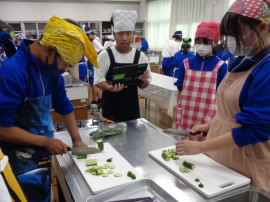 休み明けの授業では、指示通りに切ったキュウリの画像を報告しあう姿も。
