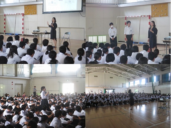等について、スライドを用いたり、生徒に直接聞いたりして大変分かりやすくお話ししていただきました。本校でも生徒のスマホの所持率が70%を越えている(平成27年度調査で71.3%)状況があり、子どもたちにとってSNS(主にライン)は大変身近なコミュニケーションのツールとなっているだけに、加害者にも被害者にもならないよう適切な使い方をしてほしいと思います。