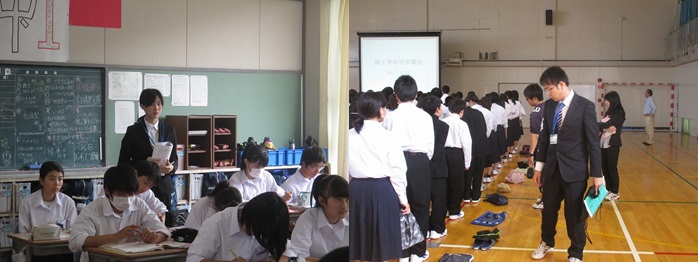 今週15日(月)から、前期教育実習が始まり、卒業生の駒田紗椰香さん(明治大学文学部4年生)と大野裕貴さん(名城大学理工学部4年生)が実習に来ています。駒田さんは、3年生の国語科と吹奏楽部、大野さんは1年生の数学とバレーボール部を担当していただきます。2人とも教職を目指しているということで、大変熱心な態度で実習に取り組んでいます。3週間という短い期間ですが、母校で少しでも多くの時間多くの生徒たちと関わり、将来の糧にしてもらいたいと思います。