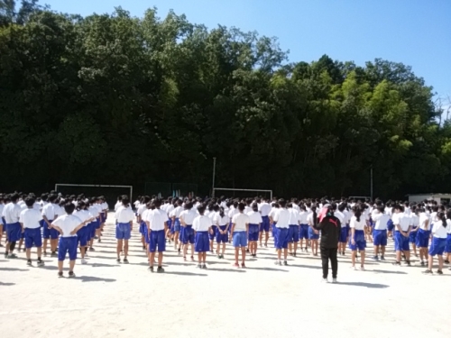真夏のような晴天の下、体育祭前日練習が行われた。高温から、生徒の体調を気遣いつつ、日程や生徒の動きに配慮された内容になった。