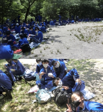 少し予定より時間が遅くなってしまいましたが、外でみんなでご飯を食べました!
