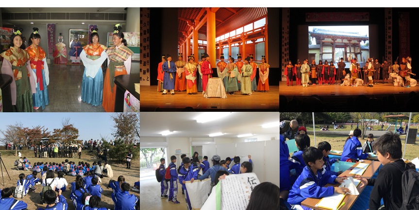 11月6日(日)、本校1年生が「総合的な学習の時間」に取り組んでいる『地域理解学習』の<歴史分野グループ約50名>と<地域行事分野グループ約50名>の生徒が、それぞれ大矢知地区と八郷地区の行事で取組を発表しました。歴史分野グループは、文化会館の第2ホールで行われた久留倍遺跡祭で、歴史劇「壬申の乱」を発表しました。200を超える地域の方や保護者・教育関係者や市民の前で、それぞれが堂々と飛鳥時代の世界を演じ切り、会場から多くの拍手とともに称賛の声をいただきました。地域行事グループは、晴天に恵まれて多数の親子連れやご年配の方々等の来場者であふれる中、「伊坂フェスタin伊坂ダム」のスタッフとして、自分たちで調べた八郷地区の文化や歴史を発表したり、八郷地区にまつわるクイズのイベントの運営をしたりして活躍し、フェスタを大いに盛り上げてくれました。どちらのグループも地域の方との触れ合いや連携を通して、地域への関心や愛着を深めるとともに、地域の方からも多くの評価をいただきました。