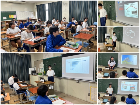 「プレゼン力」を培う授業。2年生の社会科の様子です。