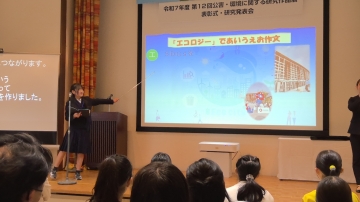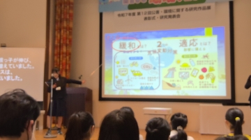市長賞を受賞した増田さんは、その後開かれた研究発表会で自身が取り組んだ研究を発表する機会もありました。増田さんのプレゼン発表は、研究内容がとても丁寧に分かりやすくまとめられていました。これも本校のプレゼン力の成果ですね。すばらしい! 発表内容の「エコ農業」は、研究内容の確かさに加え、実験を自ら企画し実践を通して学んだ探究力、プレゼンの構成力、資料の工夫、聞き手を意識した語り口など、高いプレゼン力を十分に発揮した発表でした。
