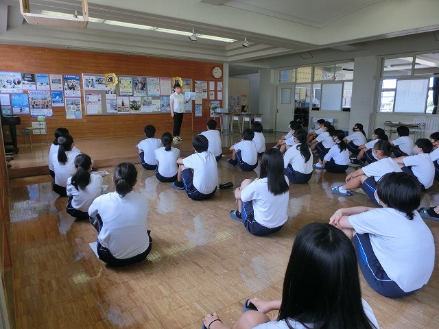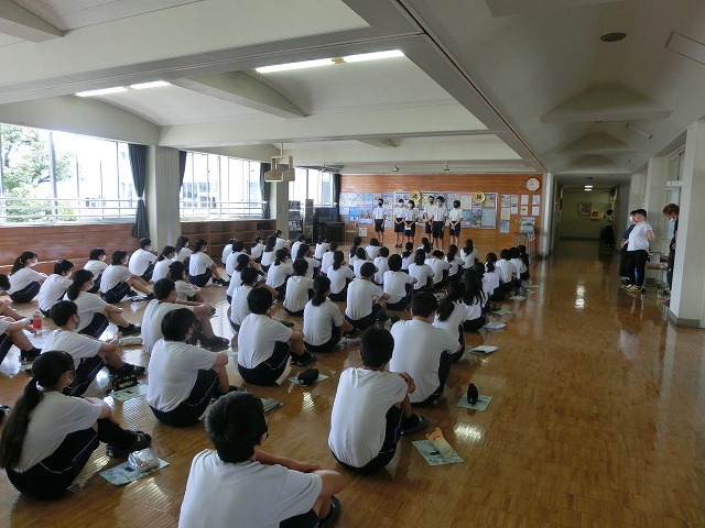 また、夏休みの過ごし方、2学期に向けてなどについて、いろんな先生から話をしてもらいました。多くが部活動を引退し、受験に向けてスタートする、この夏休み。計画的に、そして着実に努力を重ね、自分の力を伸ばしてほしいと思います。