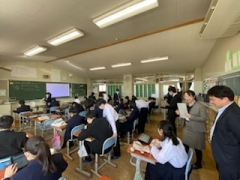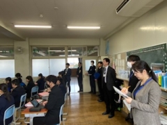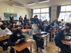 四日市市学校教育ビジョンに基づく教育施策の展開について評価を行うために、大学の先生や教育委員会の方々が本校を視察されました。