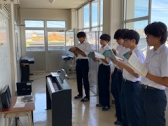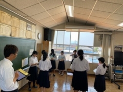 文化祭の合唱コンクールで歌う「時を越えて」を、『聴いている人に伝わる表現を練習する』を授業のめあてとして、歌詞の内容や曲想を味わい、豊かな響きある合唱をつくりあげていきました。