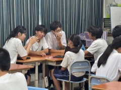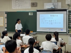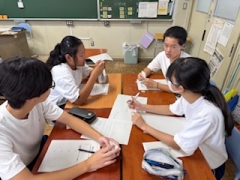 いよいよ2学期が始まりました。今学期もどうぞよろしくお願いします。中学3年生として、多くの行事にリーダーシップを発揮し、「自律・共生・創発」を意識した取り組みを進めていきたいと考えています。3限目には、夏休みの思い出を短いプレゼンにまとめ、班の仲間や学年全体に向けて発表しました。お互いの体験を共有する中で、表現力や伝える力も高めることができました。 4限目はゲーム形式の言語活動を通して、久しぶりに顔を合わせた仲間との対話を深めました。笑顔と活気にあふれる中で、2学期の良いスタートを切ることができました。