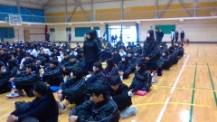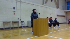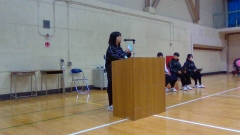 そんな中、4限目にはテーマスピーチの発表がありました。1年生のテーマは「おすすめの本」、3人の人が学年を代表してスピーチしてくれました。3人とも原稿を見ずに、聞いてくれている人たちのほうを見ながら堂々と伝えることができていて感心しました。あんな大勢の人の前であんなふうにスピーチできるなんて素敵ですね♪