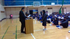 また、あわせて表彰伝達も行われ、書写展や美術展、女子バスケットボール部などで好成績を収めた人たちの表彰もありました。校長先生のお話にもありましたが、