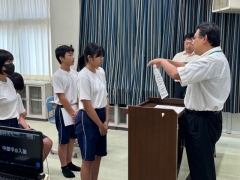 続いて、終業式です。校長先生から1学期を振りかえって、お話がありました。