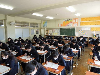 本日16日から18日まで3日間「卒業テスト」が始まりました。中学校最後の定期テストとなります。最後の1問までケアレスミスのないように、努力した成果を出し切ってください。