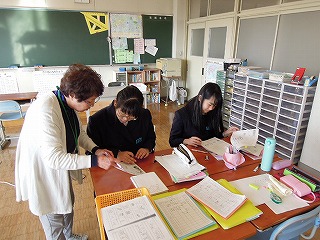 また、ワールド教室では中国からの転入生2人が、日本語の習得のため「書く、読む」の練習を繰り返し行っています。とても熱心に学習している様子は、見習うべきだと思います。
