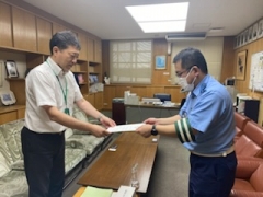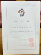 四日市南警察署の交通第一課の方と四日市南地区交通安全協会の方が来校されました。本日7月11日から半年間、「交通安全活動推進モデル校」の指定を受けました。冊子をさかのぼると7年ぶりの指定です。