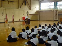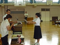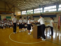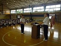 表彰伝達では野球部や柔道部、女子ソフトテニス部など多くの部で活躍がありました。他にも3年生の浅野さんが学校の代表でスピーチコンテストに出場し、最優秀賞を受賞しました。皆さん、おめでとうございます!2学期は新チームとなり、新人大会等の大会があります。目標に向かって頑張ってください。