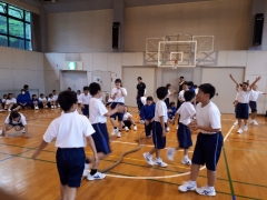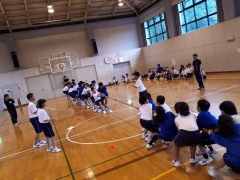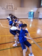 創作活動を終え、体育館にてクラス対抗綱引きを行いました。掛け声やチームワークを形に「the・団結力」が発揮できたと思います❗