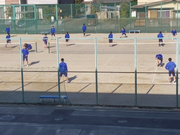 3年生の体育の授業は、テニスの様子。寒風の中、ボールと戯れています。楽しそう!