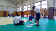 今日の1年生の体育は武道場で上体おこし・長座体前屈・握力をしました。