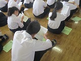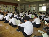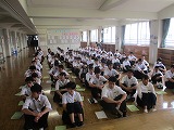 3年生では1学期最後の学年集会を行いました。1学期は5月初旬に修学旅行があり、短い間の準備だったにもかかわらず、生徒たちはルールやマナーをしっかり守り、素晴らしい修学旅行にしてくれました。また普段の授業でも真剣に授業に臨む雰囲気がより一層、高まってきています。今日の学年集会ではこれからの進路選択に向け、各県立高校の選抜方法、夏休みの学習や生活の留意点について、資料やしおりを用いて説明をしましたのでまたご家庭でも「夏休みのしおり」や本日配付した資料をみていただければと思います。