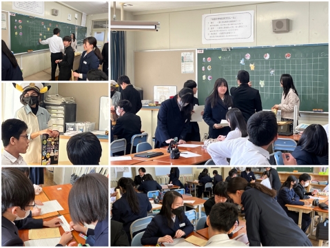 今日は、HEFさんの来校日。何やら楽しそうな声が聞こえたので、3年生の教室を覗いてみると、黒板に謎の方眼図が・・・。