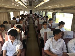 修学旅行も終わりに近づき、列車の車掌室の車内放送を使い解散式です。
