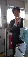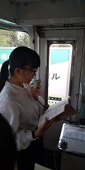 森井先生は車掌さんにのようで少しうれしそうにみえます。