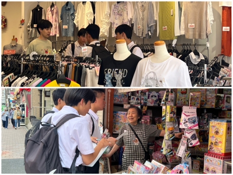 巣鴨で、頑張ってインタビュー中の経済チーム。