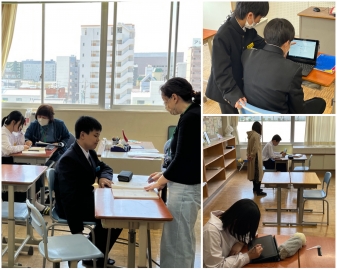 ワールド教室、6組、四つ葉教室では、少人数授業が行われていました。