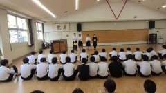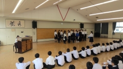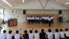 続いて、各学年のクラス合唱披露。1年生はドキドキ感でいっぱいの姿。2年生は昨年の経験を活かし、落ち着いた姿。3年生は堂々と歌いあげる姿。ほかの学年の合唱を聴いているときも温かな雰囲気でした。