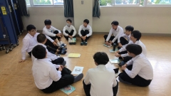 今日から縦割り活動「群合唱」が始まりました。リーダーたちは体育祭の経験も生かしながら、今日をどういう時間にするかをしっかりと話し合い、迎えました。