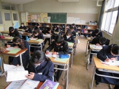 1年間の総まとめとなるテストです。日頃からの学習で積み重ねてきた知識を、テスト当日に発揮できるように集中して取り組みましょう。提出物も期日を守り、計画的に学習を進めていきましょう。また、生活リズムを崩すことなく、食事や睡眠など体調管理にも気を付けましょう。
