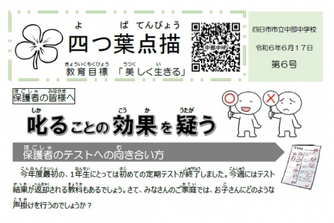 今回の四つ葉点描は、テストに関する保護者の向き合い方と