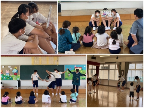 音楽に合わせて体を動かしたり、じゃんけんゲームをしたり。
