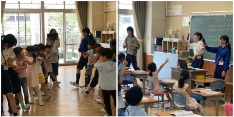 1年生の音楽。リトミックな授業のお手伝い。