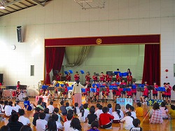 吹奏楽部は中央小学校で出前演奏をしてきました。中央保育園の園児も観に来てくれました。知っている曲にはノリノリで聴いてくれていました。