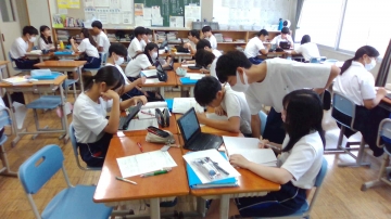3年生の数学の授業では二次方程式の解き方の学習がすべて終了したのでテストを行います。そこでテストでみんなが良い得点が取れるように各班で教えあい学習をしています。 数学が得意な人、そうでない人がいて当然ですが、みんなで力を合わせ、助け合って、全員が高得点をめざしてほしいと思います。