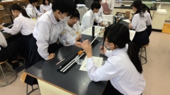 本日の理科の授業では、斜面を使った衝突実験を行いました。