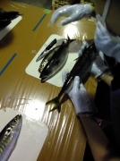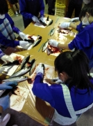 サバのからだの模様はそれぞれ異なるそうです。解説をしていただきながら、みんな頑張って魚をさばいていました。