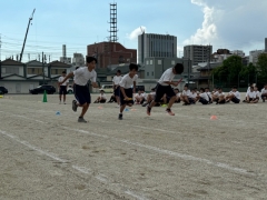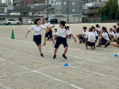 学年練習のトップバッターは2年生です。今年度は同時進行で各学年が練習をしています。ラジオ体操や準備運動を後輩と共に行いました。うまくリードしながら、綺麗に指先まで意識して取り組んでいましたね…そのあとは全員リレー。たくさんの視線を感じ、緊張感のある中でのスタート。最後まで諦めずに仲間に声をかけて、素晴らしい練習になりました。バトンパスや走り方には成長も見られました。いいぞ!2年生!!