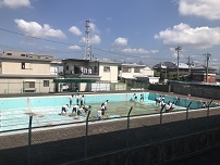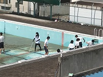 梅雨空の合間の晴れ間を有効に活用して,プール掃除を行っています。さすが3年生,手際よく作業を進めていました。