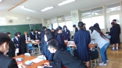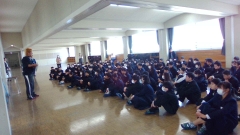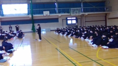 1限目はさっそく「新入生を迎える会」でした。生徒会の人たちが中学校のことをたくさん教えてくれました。