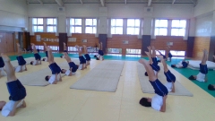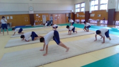 今日はどのクラスも初めての授業。マット運動は苦手な子も多いのですが