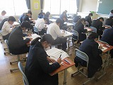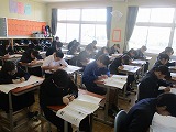 本日3年生では全国学力・学習状況調査を実施しました。今年から国語・数学に加え英語も実施されました。特に英語の「聞く・話す」のテストではパソコンとヘッドフォンを使いながらのテストでした。なかなか難しい問題もありましたが、どの生徒も空欄をなくすよう努力し、最後まで一生懸命に取り組んでいました。