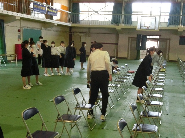 また、午後からは会場の準備をしました。シート敷きや椅子並べなど、短い時間でしたが、スムーズに行うことができました。最後に並びの点検も自主的にしてくれていました。素晴らしい動きでした!