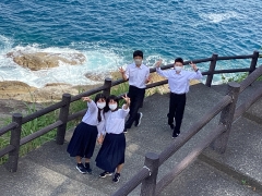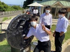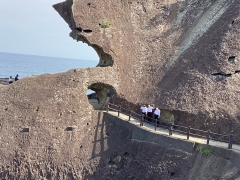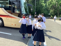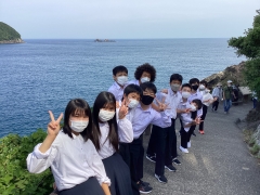 鬼ヶ城につきました。みんな眠そうにバスから降りてきます。